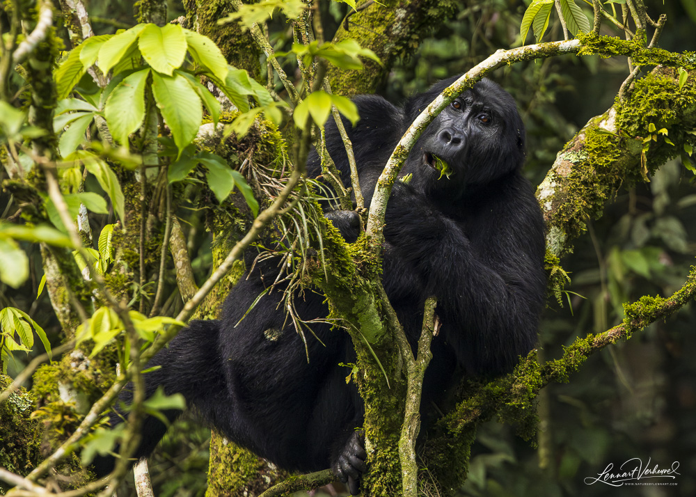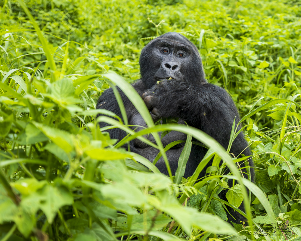 But despite their strength, agility, and intelligence, mountain gorillas are still threatened. Infectious diseases pose a risk, and of course, there is the ever-present danger of habitat loss. In Uganda, the government has long made the choice to allow limited tourist visits to habituated families of gorillas—at a steep price. This way, the pressure of ecotourism is kept in check, while the revenue helps protect their habitat.