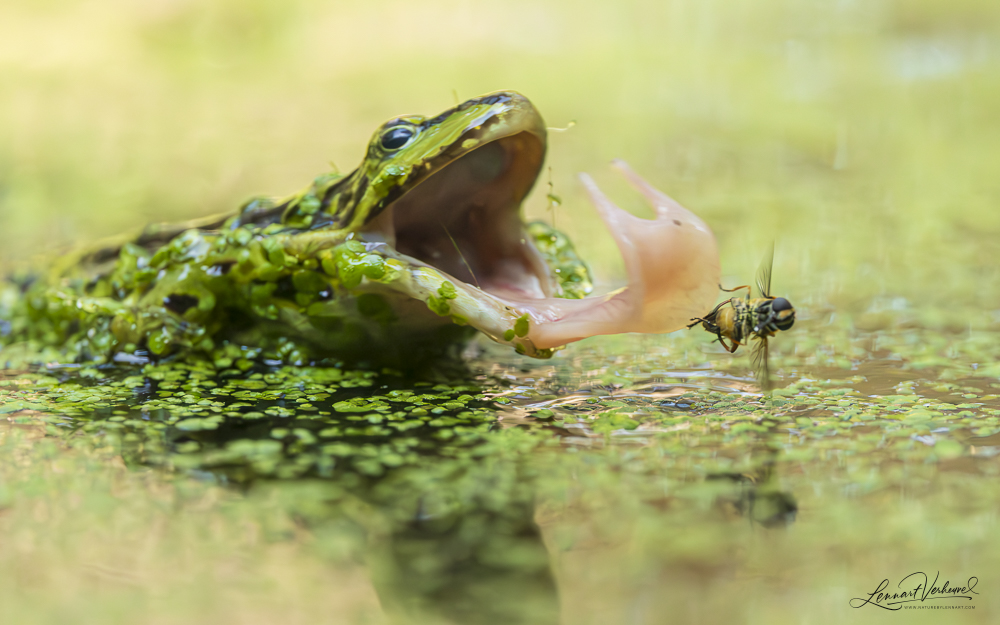 During another session in one of Glenn Vermeersch’s hides, I noticed how Green Frogs were hunting insects. That provided a fun new challenge for the day. The result certainly didn’t disappoint me: how frogs turn into little crocodiles! More from the month of June can be found here.